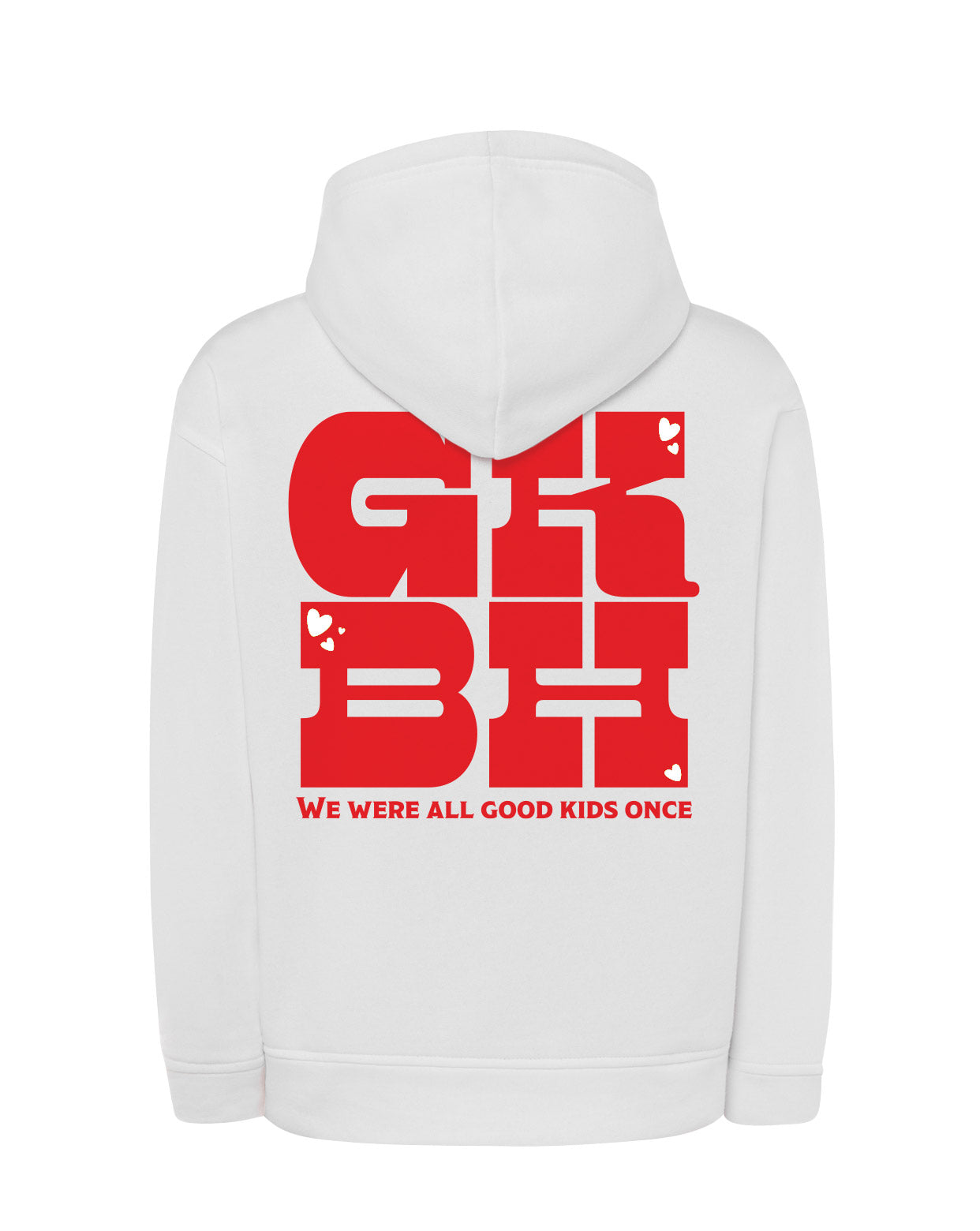 Mukava ja näyttävä unisex-huppari, jonka selkäpuolella on suuri GKBH-printti ja teksti “We were all good kids once”, etu puolella rinnassa GK-logo. Pehmeä ja lämmin materiaali tekee hupparista täydellisen niin arkeen kuin vapaa-aikaan. Reilu huppu ja joustavat resorit lisäävät käyttömukavuutta. Hupparit on suunniteltu ja painettu Suomessa, joten saat laadukkaan ja paikallista työtä tukevan tuotteen.